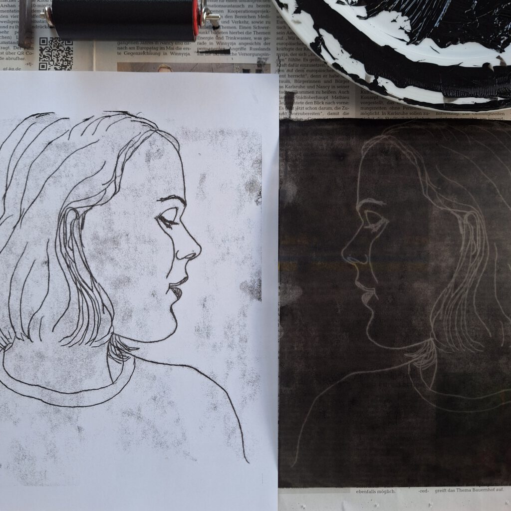 In my studio, located in an old shipping container in Perfekt Futur Karlsruhe, I create portraits of famous women from the worlds of culture, science, and society. However, portrait illustrations can also be used in many other areas: as part of a book cover, a portrait for a column in the editorial section, or a couple’s portrait as a wedding gift. I am equally passionate about portrait painting and other themes in artistic series of works.